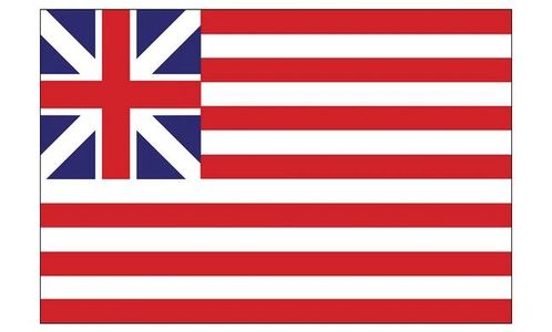Also known as the Great Union Flag, Continental flag, or Continental Colors, the Grand Union Flag this is the first true United States Flag. The design combines the British King's Colours as the canton, and thirteen stripes signifying the thirteen new colonies.