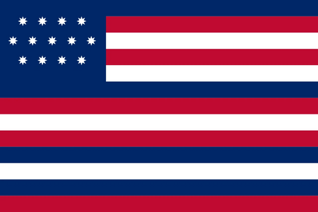 Also known as the John Paul Jones Flag, this unconventional variation of an early United States ensign is perhaps one of the most unique designs ever used to identify the United States as an official flag. The flag has thirteen stripes colored red, white, and blue, and thirteen 8-point stars in the canton.